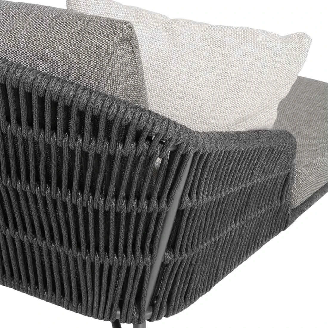 Für die Herstellung des Gestells wird hochwertiges und wetterfestes Aluminium verwendet. Farblich ist es in attraktivem Anthrazit gehalten. Das Gestell ist mit Rope umflochten und bringt somit ein gemütliches Flair auf Ihre Terrasse. Für die Bezüge in Anthrazit/Hellgrau wird Olefin verwendet. Der Marken-Outdoorstoff überzeugt mit einer hohen Witterungsbeständigkeit. Denn sowohl Sonne als auch Regen können dem robusten Outdoor-Stoff kaum etwas anhaben.