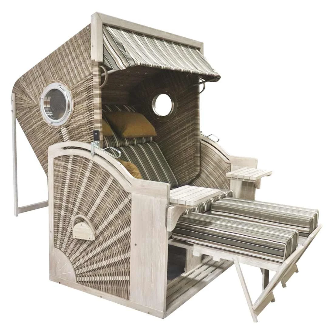 DeVries Pure Seaside XL Strandkorb Geflecht/Pinienholz 440 Ice Flower
