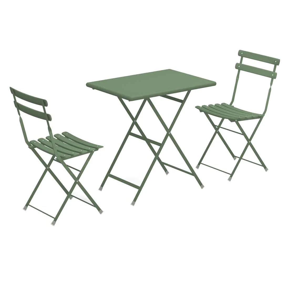 Das Gartenmöbel-Set begeistert damit, dass das Gestell, die Sitzfläche und die Tischplatte aus Stahl (beschichtet) gefertigt sind. Dies erzeugt nicht nur ein elegantes, sondern auch ein einheitliches Gesamtbild. Für ein perfekt stimmiges Gesamtbild sorgt die einheitliche Farbgebung in stilvollem Militärgrün. Mit der rechteckigen Form lässt sich der Tisch platzsparend in Ecken oder an Häuserwänden aufstellen.