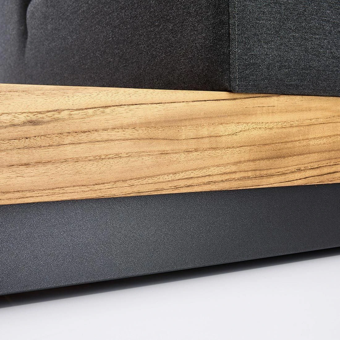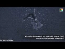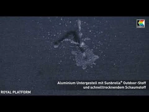Das Gestell ist aus Aluminium gefertigt. Optisch begeistert das Gestell in der Farbe Anthrazit. Ein hochwertiges Material wird auch für die Sitzfläche verwendet: In diesem Fall kam der wasserabweisende und UV-beständige Markenstoff Sunbrella zum Einsatz. Auch schmutzabweisend und schimmelresistent – ideale Voraussetzungen für eine gepolsterte Lounge im Freien!