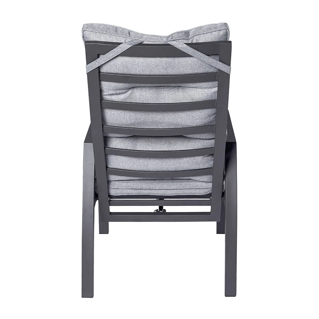 Das Gestell und die Sitzfläche sind aus Aluminium gefertigt. Als hochwertiges Material für den Bezug kommt ein Polyester-Stoff zum Einsatz. Er ist sehr strapazierfähig und bietet somit die idealen Voraussetzungen für den Einsatz im Freien. Farblich begeistert der Bezug in elegantem Grau. Damit der Gartensessel optisch ansprechend ist, sind das Gestell und die Sitzfläche im Farbton Anthrazit gehalten.