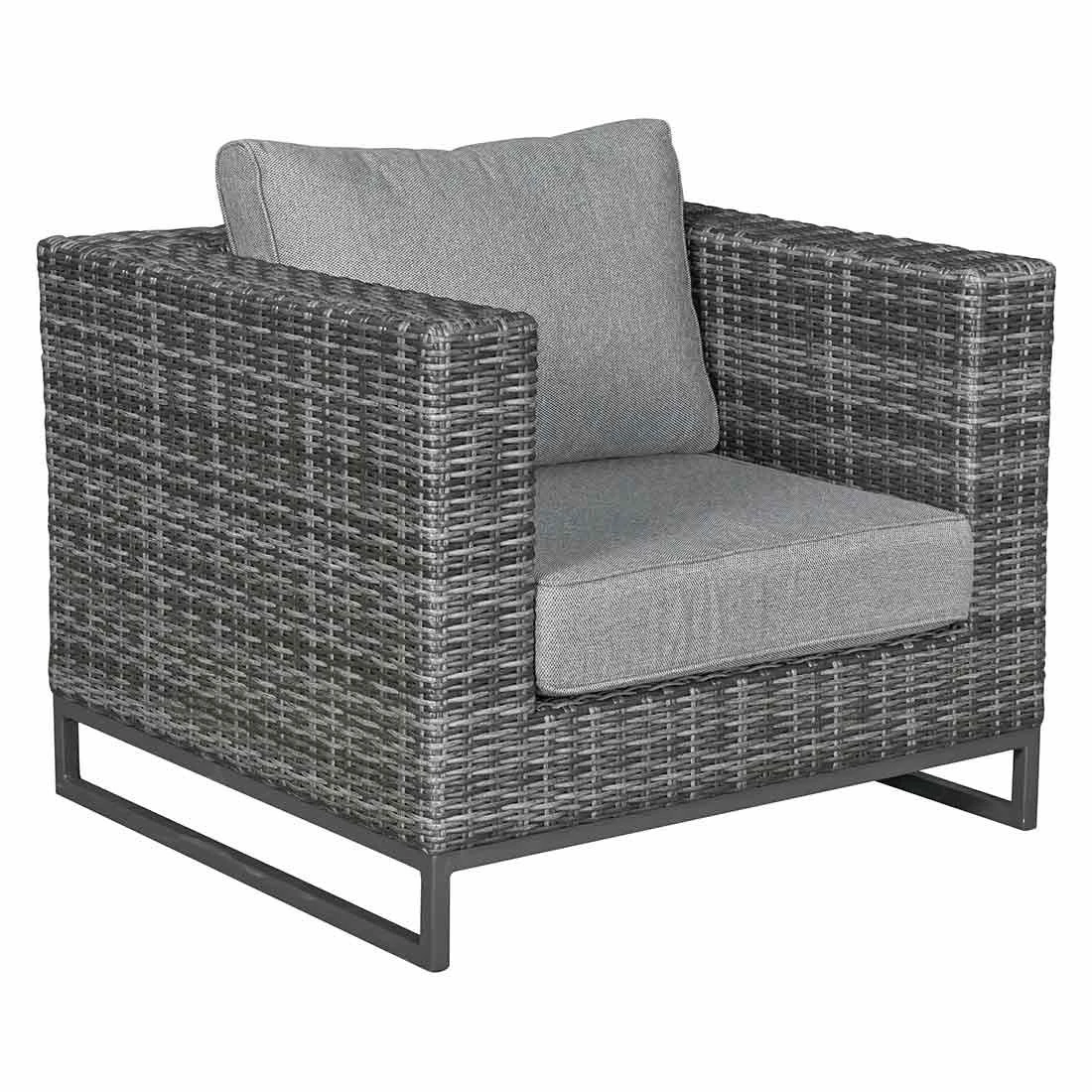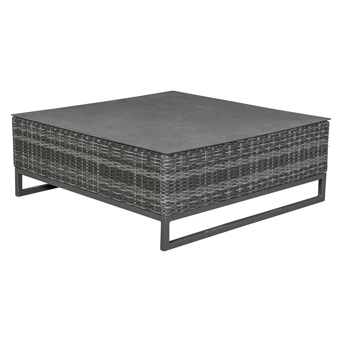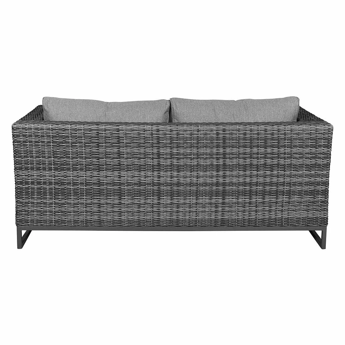 Das Gestell ist aus Aluminium hergestellt. Optisch begeistert das Gestell in der Farbe Anthrazit. Die Sitzfläche, die mit hochwertigem Polyrattan umflochten ist, bringt ein natürliches Flair auf Ihre Terrasse. Dieses Material zeichnet sich durch eine hohe Wetterbeständigkeit aus. Der Bezug des Loungesets ist aus Polyester gefertigt. Für eine längere Haltbarkeit empfehlen wir bei stärkerem oder lang anhaltendem Regen, die abnehmbaren Kissen im Innenraum zu lagern. Die Farbe des Bezugs ist Salz & Pfeffer. Die Tischplatte wird aus robustem Glas gefertigt. Die Tischplatte ist Beton Optik.