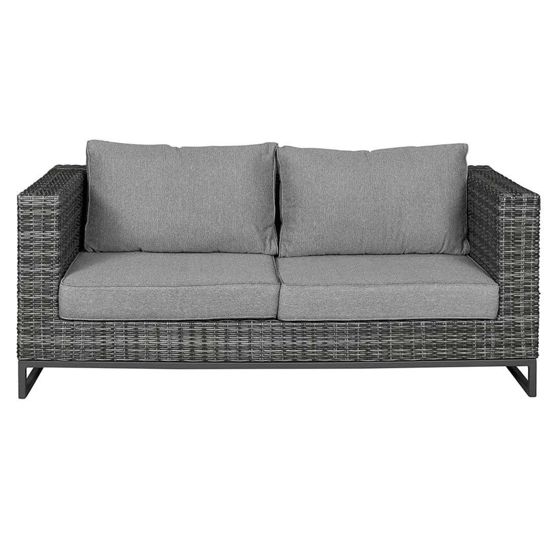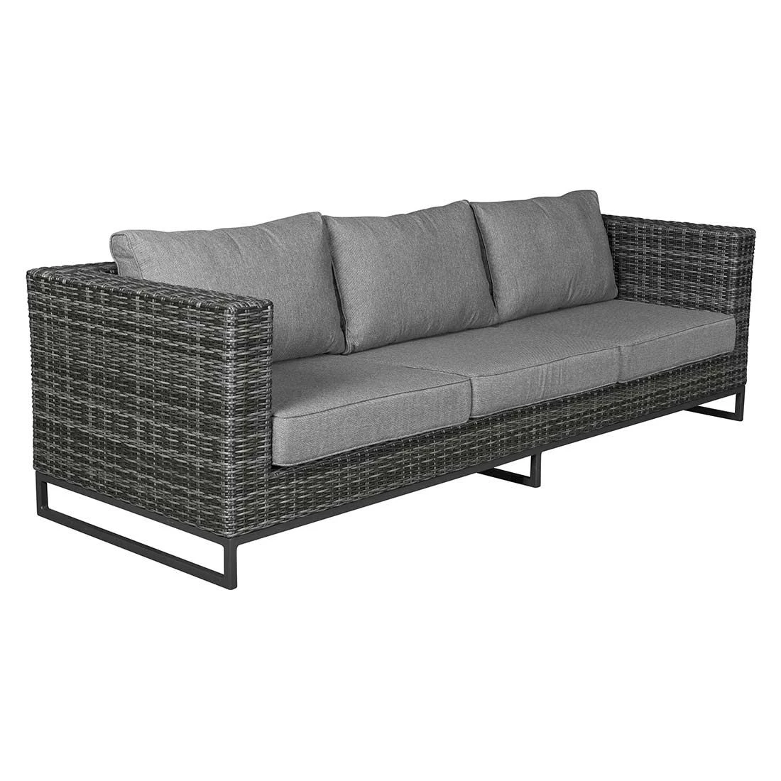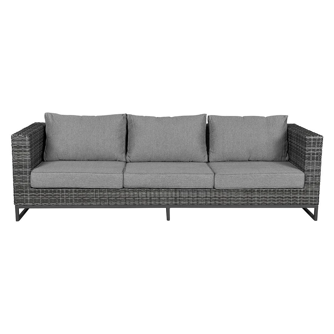 Das Gestell ist aus Aluminium hergestellt. Optisch begeistert das Gestell in der Farbe Anthrazit. Die Sitzfläche, die mit hochwertigem Polyrattan umflochten ist, bringt ein natürliches Flair auf Ihre Terrasse. Dieses Material zeichnet sich durch eine hohe Wetterbeständigkeit aus. Der Bezug des Loungesets ist aus Polyester gefertigt. Für eine längere Haltbarkeit empfehlen wir bei stärkerem oder lang anhaltendem Regen, die abnehmbaren Kissen im Innenraum zu lagern. Die Farbe des Bezugs ist Salz & Pfeffer. Die Tischplatte wird aus robustem Glas gefertigt. Die Tischplatte ist Beton Optik.