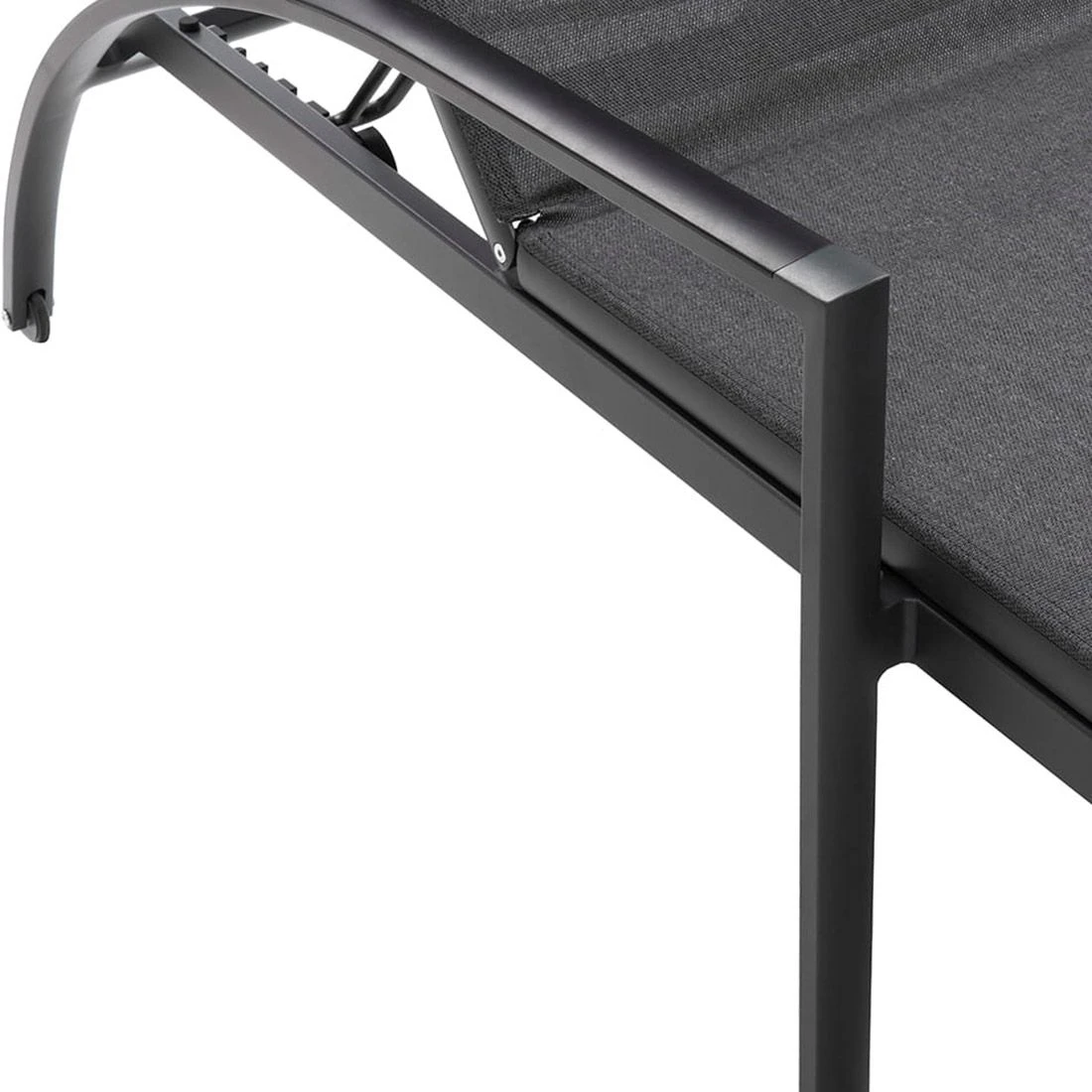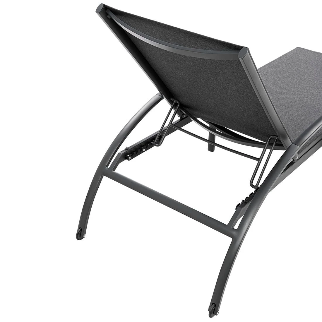 Das Gestell besteht aus pflegeleichtem und wetterfestem Aluminium. Für eine attraktive Optik ist das Gestell im Farbton Anthrazit gehalten. Die Sitzfläche wird mit Textilene bespannt. Dieses Material ist reiß- und wetterfest und zeichnet sich durch eine hohe Beständigkeit gegenüber Hitze und Frost aus. Darüber hinaus ist Textilene leicht zu säubern. Die Sitzfläche hat eine elegante Farbgebung in Coal.