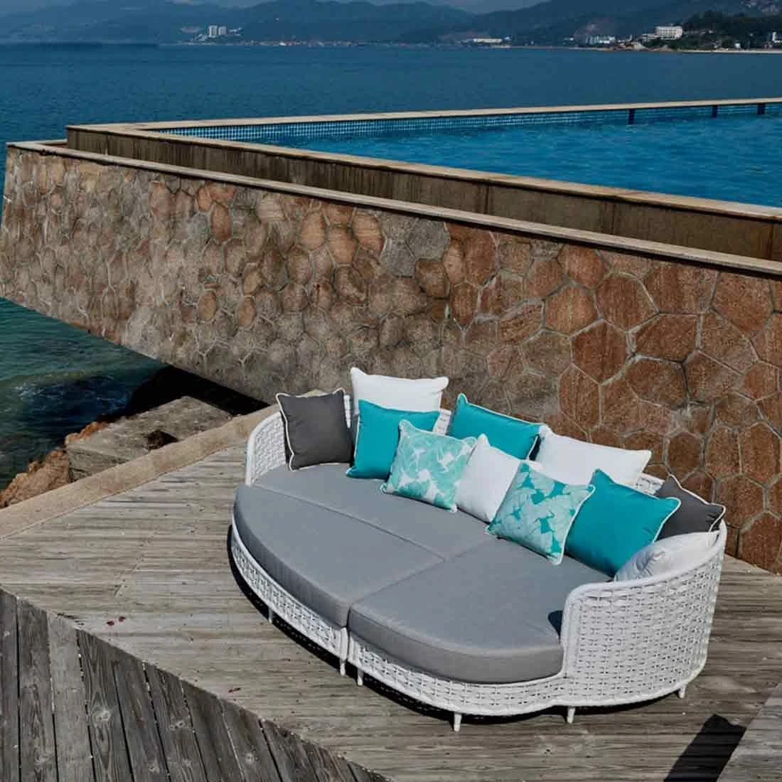 Sie lieben die See, das Rauschen des Wassers und die frische kühle Brise? Mit dieser Sonneninsel können Sie dieses Gefühl auch Zuhause genießen. Lassen Sie sich davon überzeugen und holen Sie sich echtes Küstenfeeling für Ihren Outdoor-Bereich. Machen Sie es sich mit Ihrer neuen OUTLIV. Sonneninsel Korsika so richtig gemütlich in Ihrem Garten. Die ovale Formgebung sorgt für das gewisse Etwas.