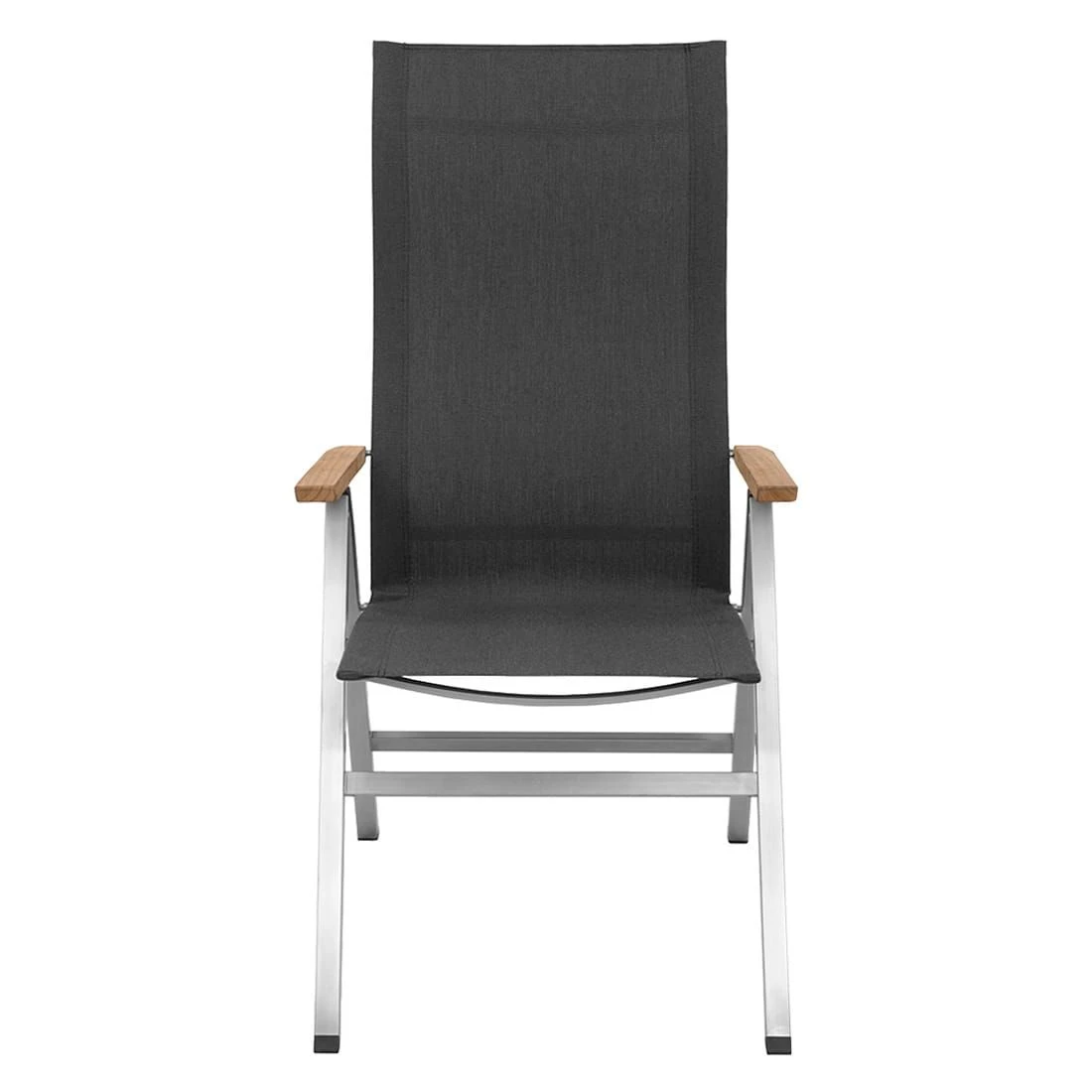 Für die Bespannung der Sitzfläche verlässt sich der Hersteller auf hochwertiges Textilene. Es zeichnet sich durch eine hohe Robustheit gegenüber Hitze und Frost aus und ist leicht zu reinigen. Die Sitzfläche hat mit 46 cm eine komfortable Höhe.