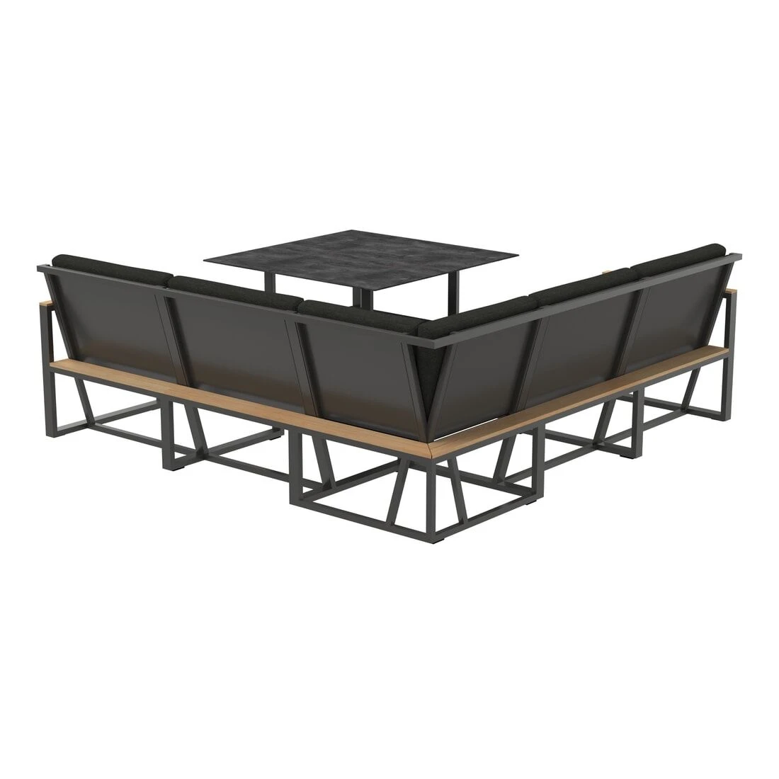 Damit die Dininglounge optisch ansprechend ist, sind das Gestell und die Tischplatte im Farbton Eisengrau (Anthrazit) gehalten. Als Gestellmaterial hat der Hersteller qualitativ hochwertiges Aluminium gewählt. Die Sitzfläche ist aus dem wasserabweisenden Markenstoff Sunproof gefertigt und damit auch besonders lichtecht und UV-beständig. Die robuste Tischplatte aus Polytec überzeugt mit ihren Materialeigenschaften. Die Platte ist wetter-, kälte- und kratzfest und damit der perfekte Begleiter für Ihren Outdoor-Bereich.