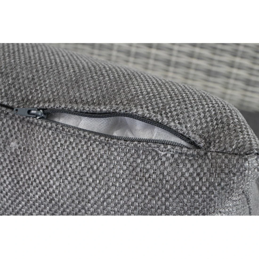 Das Gestell wird aus Aluminium in der Farbe Weiß-Grau matt gefertigt. Das geringe Eigengewicht des Materials macht das Mittelmodul zu einem robusten, aber dennoch leicht zu transportierenden Möbel auf Ihrer Terrasse. Das Gestell, das mit hochwertigem Polyrattan umflochten ist, bringt ein natürliches Ambiente auf Ihre Terrasse. Dieses Material zeichnet sich durch eine hohe Wetterbeständigkeit aus.