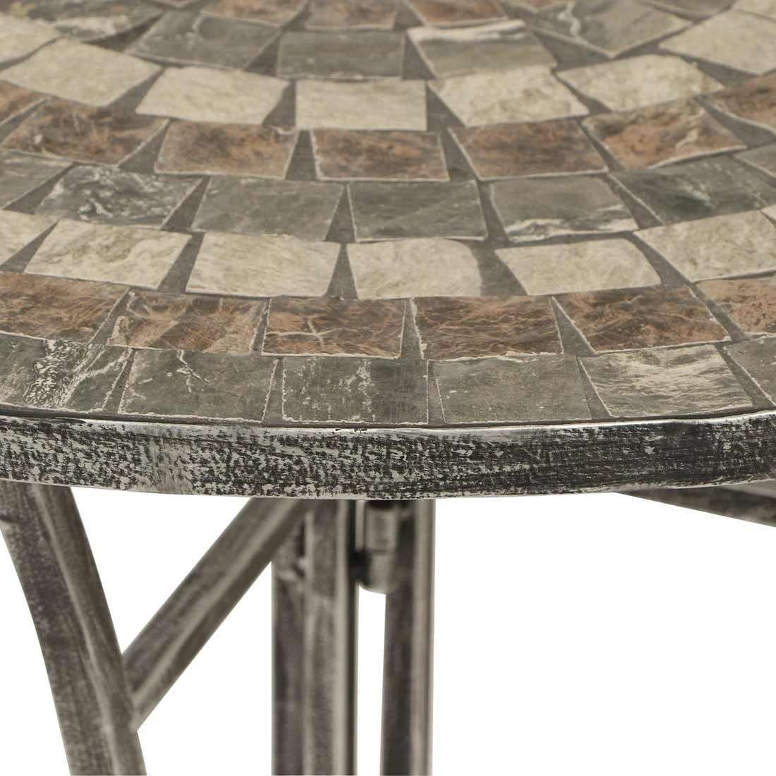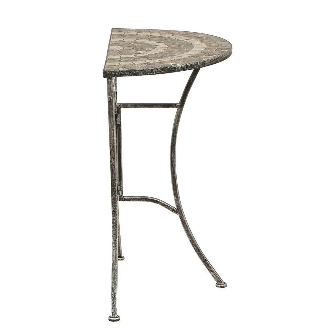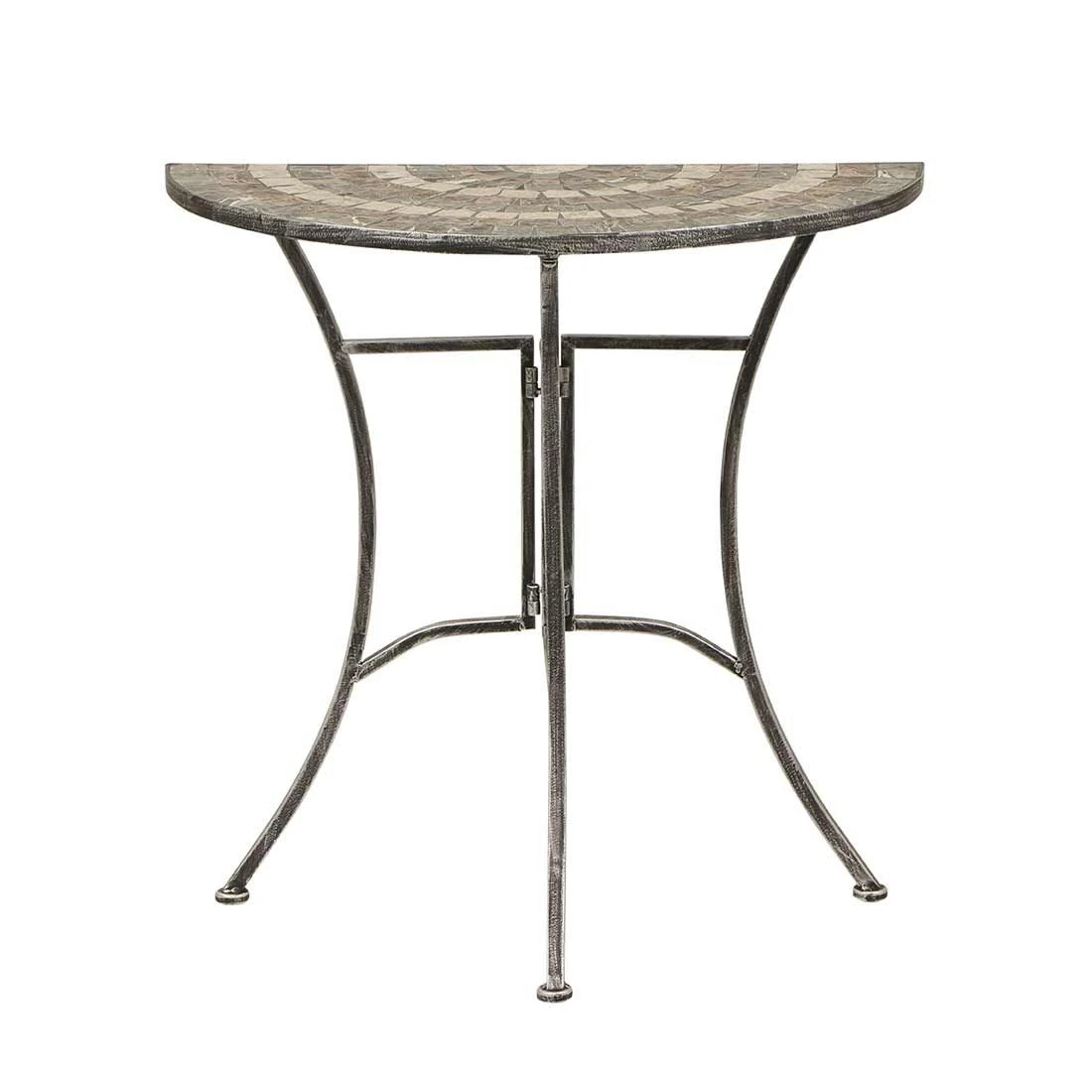 Das robuste Gestell-Material des Beistelltischs besteht aus Stahl. Farblich ist das Gestell in Silber gehalten. Die Tischplatte aus Kunststein überzeugt mit ihrer natürlichen Ästhetik, Witterungsbeständigkeit und Langlebigkeit. Sie ist eine kostengünstige Alternative zu echtem Stein. Farblich ist die Tischplatte in einem schönen Mosaik gehalten. Die außergewöhnliche Formgebung macht den Beistelltisch Felina zu einem extravaganten Schmuckstück, das alle Blicke auf sich zieht.