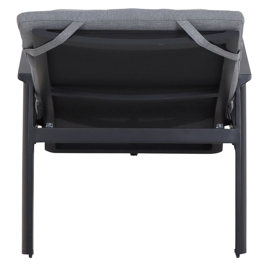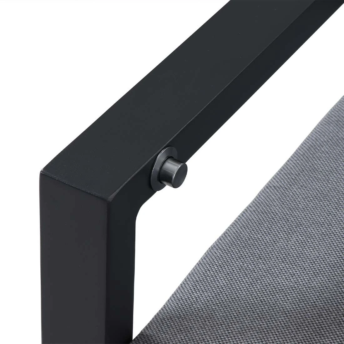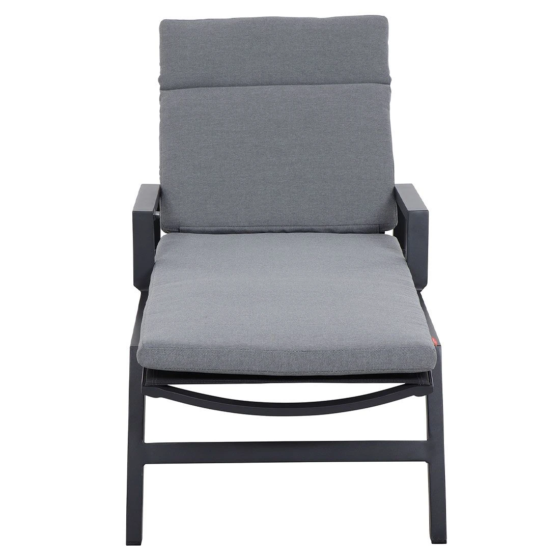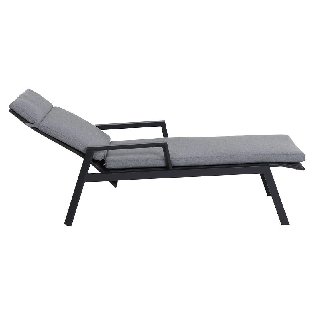 Für eine attraktive Optik ist das Gestell im Farbton Anthrazit gehalten. Die Sitzfläche der Gartenliege wird mit Textilgewebe bespannt. Die Farbgestaltung der Sitzfläche in Dunkelgrau ist überaus ansprechend. Den finalen Schliff erhält diese Gartenliege durch den Bezug in Salt&Pepper.