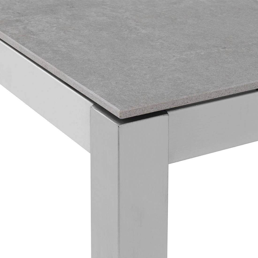 Das Gestell besteht aus pflegeleichtem und rostfreiem Edelstahl. Farblich ist das Gestell in Silber gehalten. Die Tischplatte besteht aus Dekton. Dekton ist eine Mischung aus 20 natürlichen Mineralien. Bei der Herstellung von Dekton kommt eine besondere Technologie zum Einsatz, die in der Lage ist, mineralische Partikel so zu sintern, dass sie sich miteinander verbinden. Das Ergebnis: eine langlebige, sehr robuste und für jeden Einsatzbereich geeignete Tischplatte. Farblich ist die Tischplatte in einem schönen Kreta gehalten. Das klassische Vierfuß-Gestell garantiert Ihnen maximale Beinfreiheit. Die rechteckige Form ermöglicht es Ihnen, den Gartentisch in Ecken und an Häuserwänden platzsparend einzusetzen.