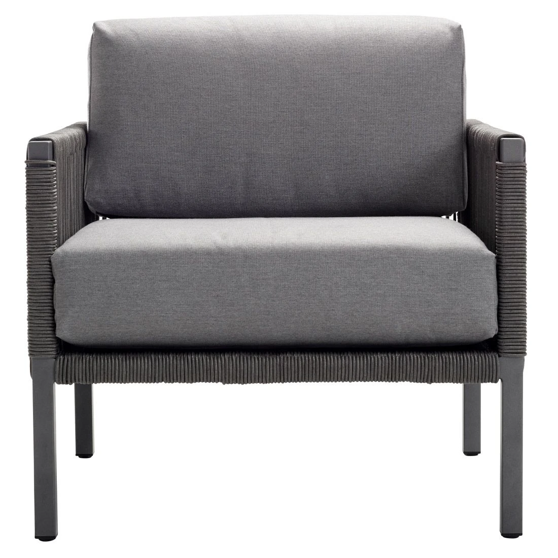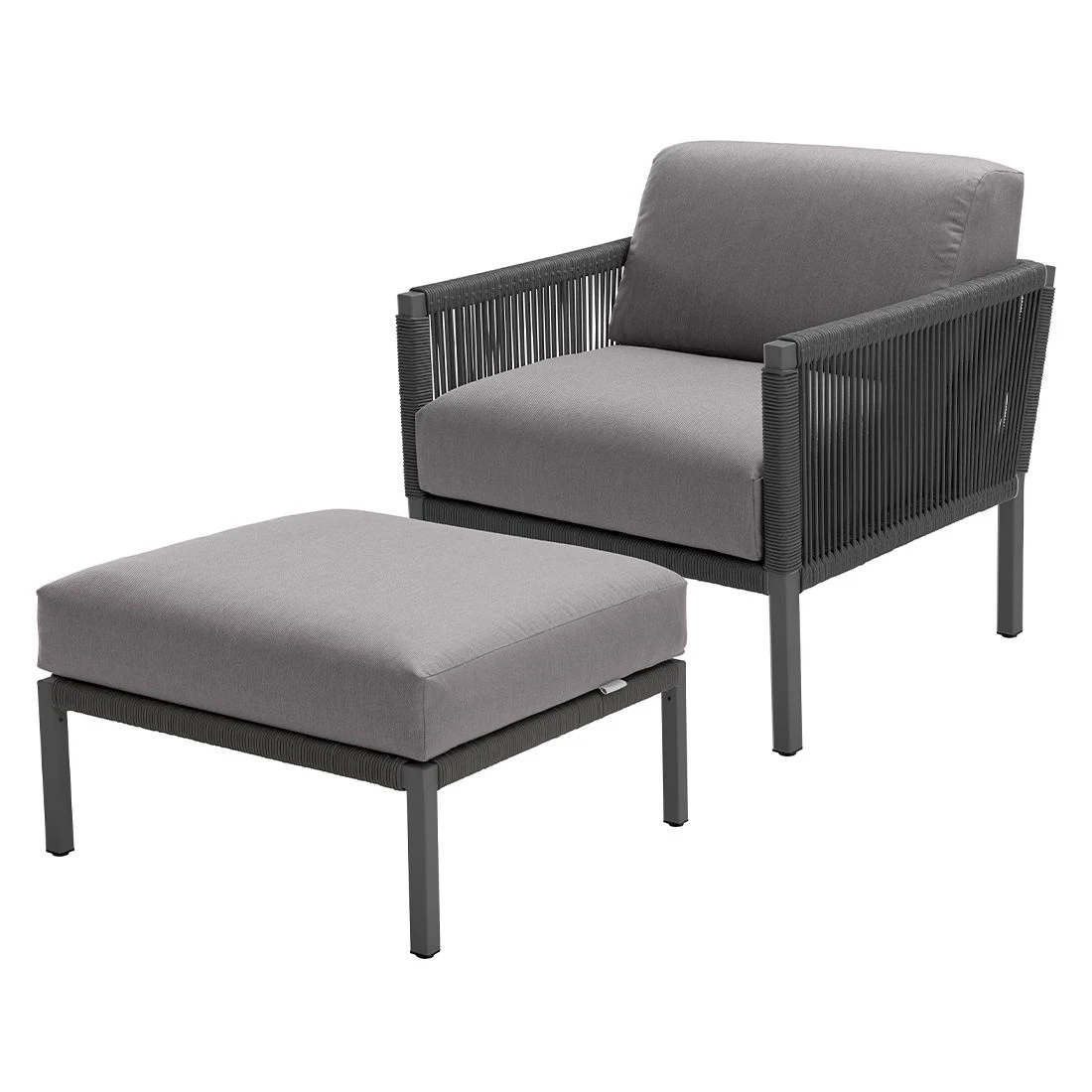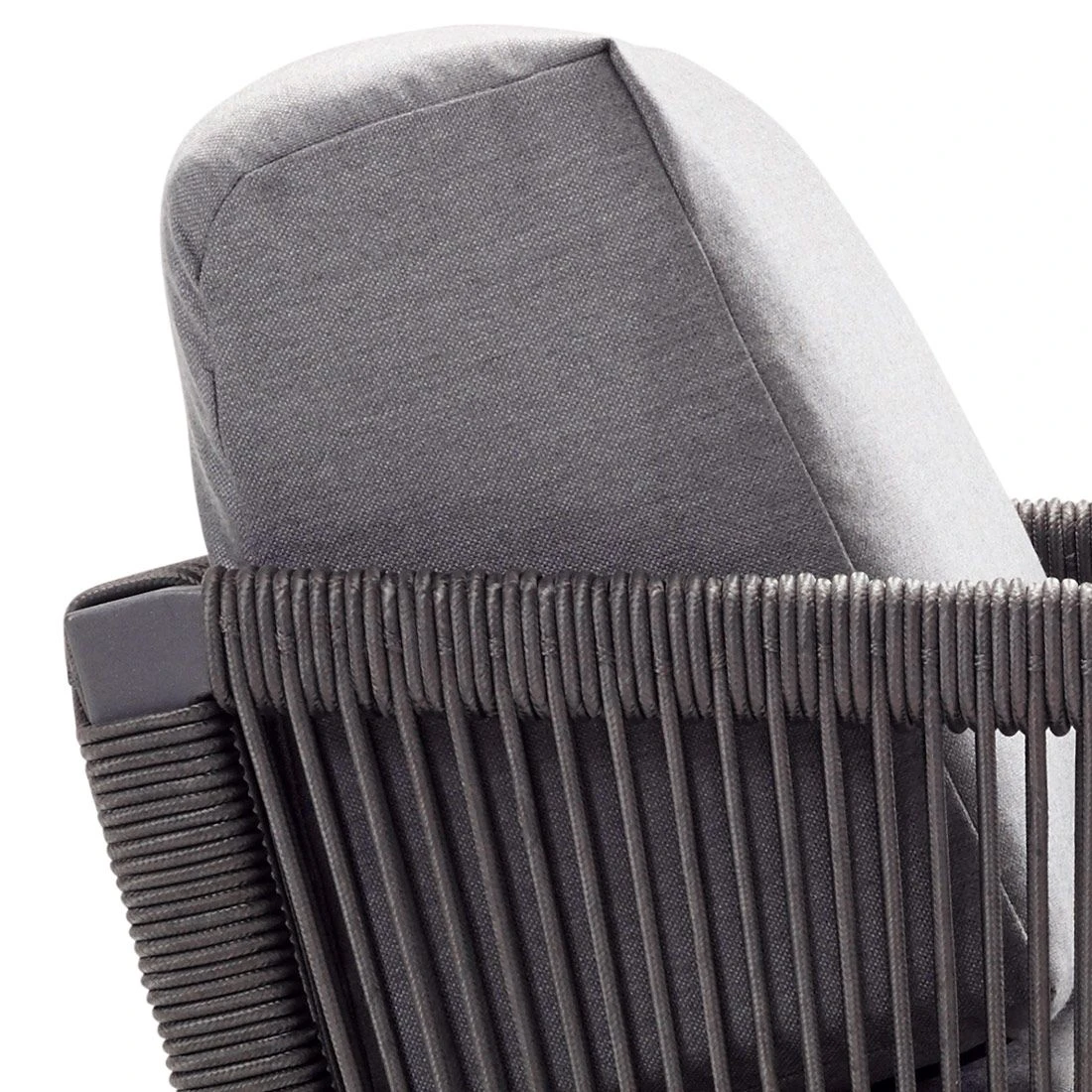 Das Gestell besteht aus pflegeleichtem und wetterfestem Aluminium in der Farbe Anthrazit. Ein Material, das mit seiner Robustheit überzeugt. Das Gestell ist mit Rope umflochten und bringt somit ein gemütliches Flair auf Ihre Terrasse. Der Bezug des Loungesessels ist aus Acryl gefertigt. Dieses Material begeistert mit einer hohen Witterungsbeständigkeit. Regen kann dem robusten Outdoor-Stoff kaum etwas anhaben.