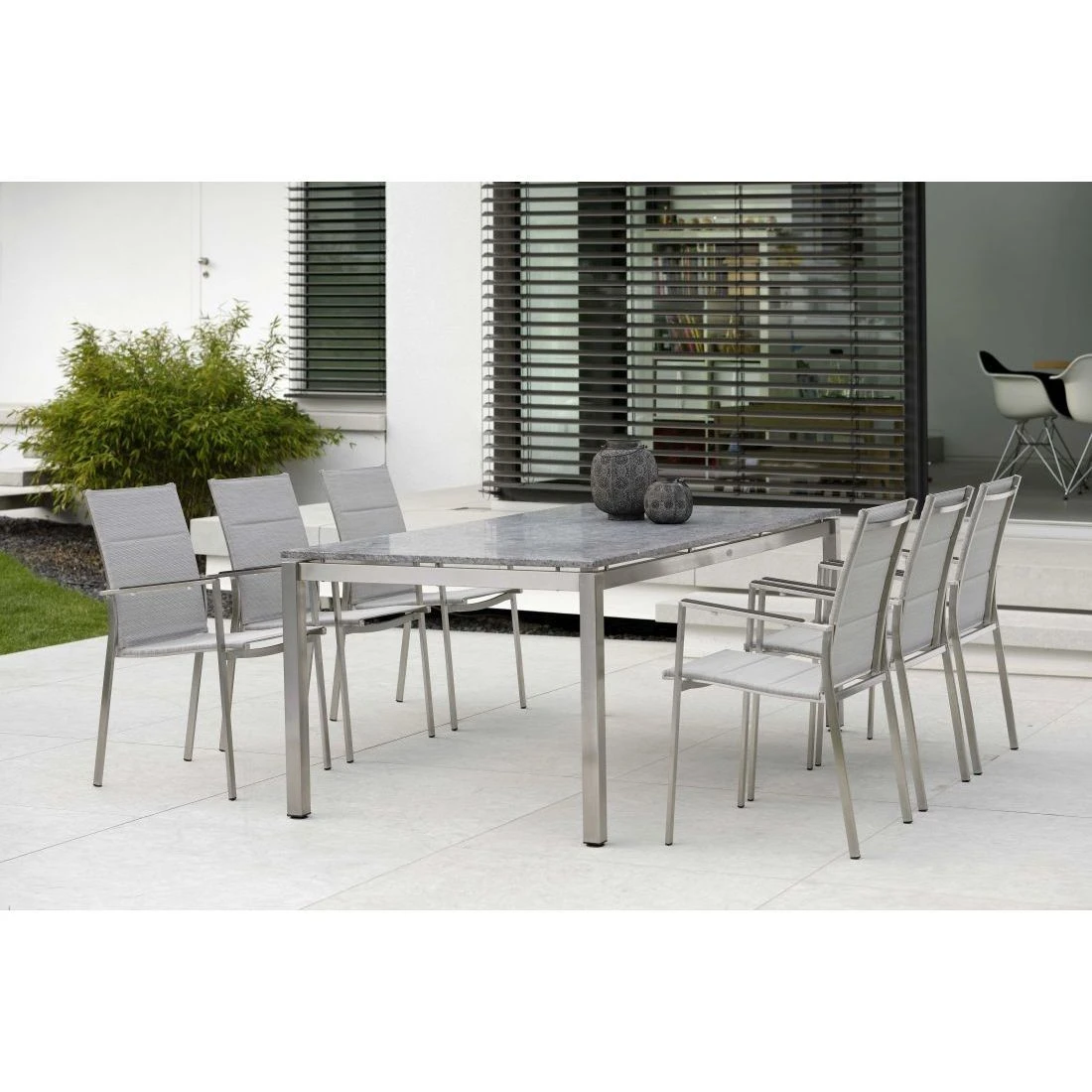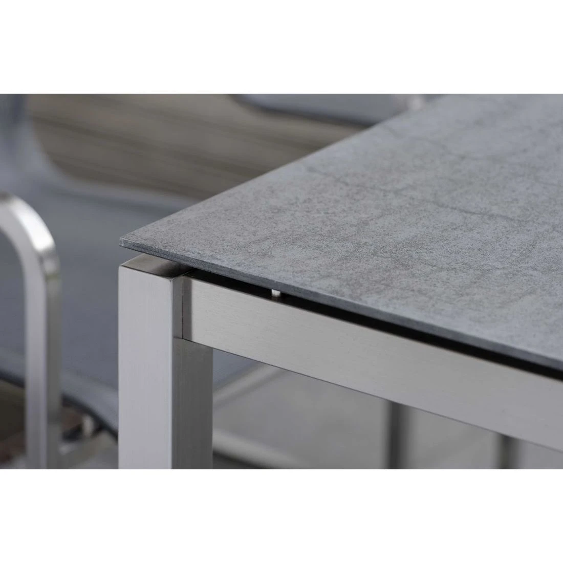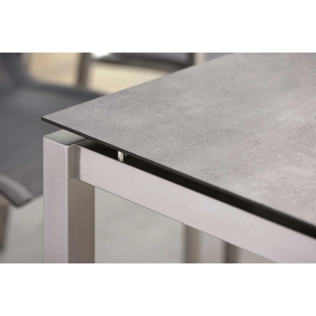 Das Gestell besteht aus pflegeleichtem und rostfreiem Edelstahl.