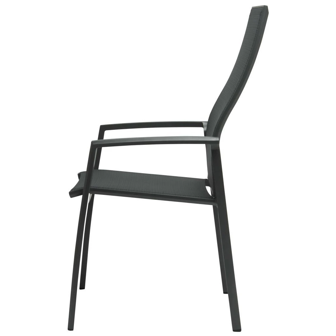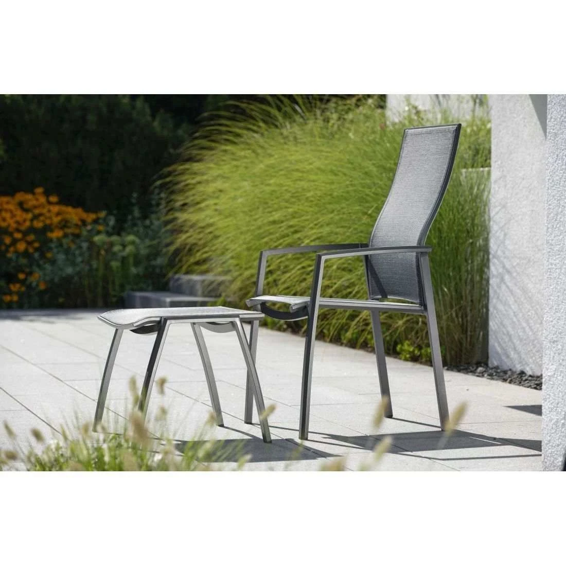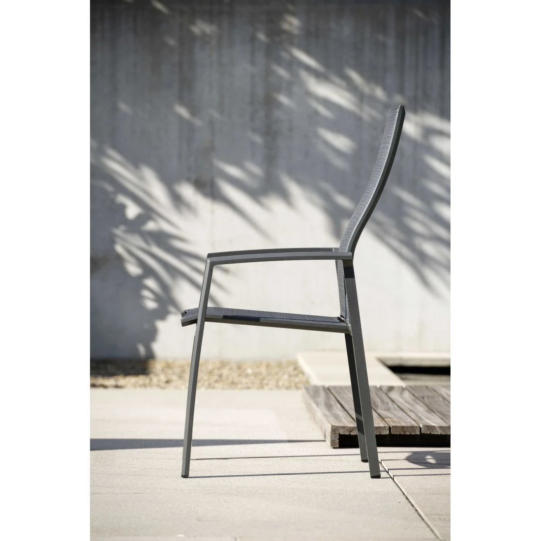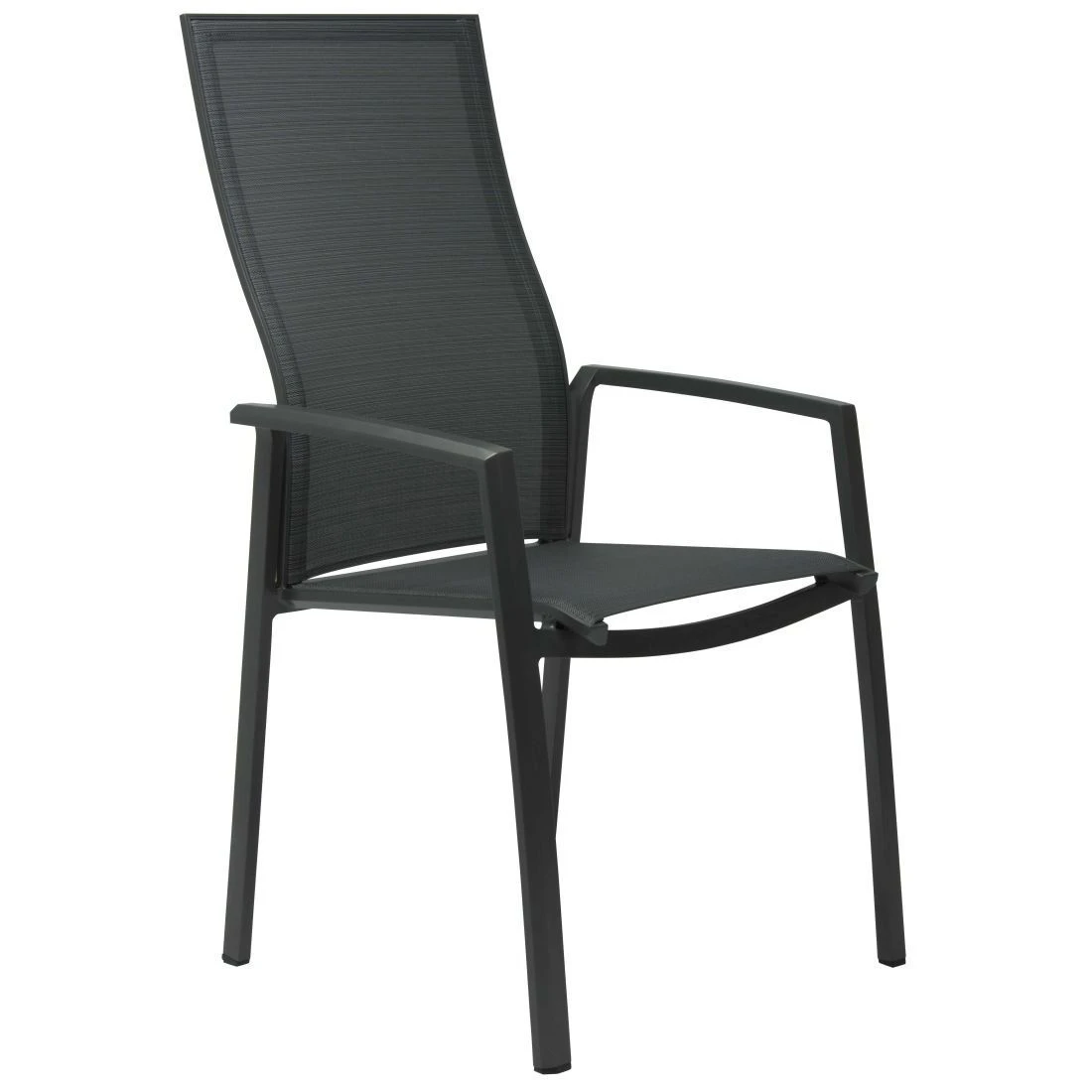 Das Gestell besteht aus pflegeleichtem und wetterfestem Aluminium. Für eine attraktive Optik ist das Gestell im Farbton Anthrazit gehalten. Für die Bespannung der Sitzfläche verlässt sich der Hersteller auf hochwertiges Textilene. Es zeichnet sich durch eine hohe Robustheit gegenüber Hitze und Frost aus und ist leicht zu reinigen. Die Sitzfläche hat eine elegante Farbgebung in Karbon.