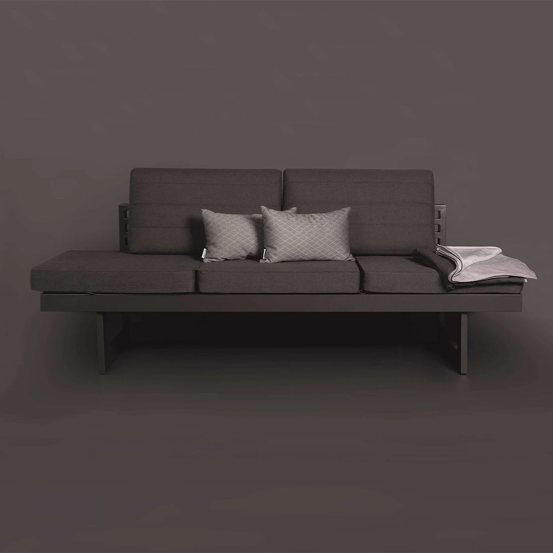 Das Gestell wird aus Aluminium in der Farbe Anthrazit gefertigt. Die Sitzflächen der Lounge ist mit einem robusten und wetterfesten Outdoorstoff bezogen. Auch wenn diese Wind und Wetter trotzen, empfehlen wir, die abnehmbaren Kissen bei länger andauernder Feuchtigkeit drinnen zu lagern.