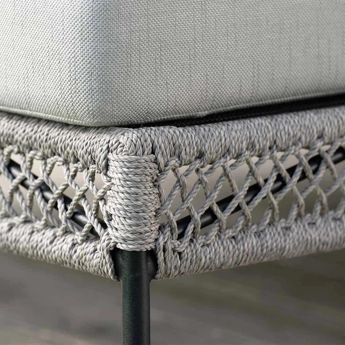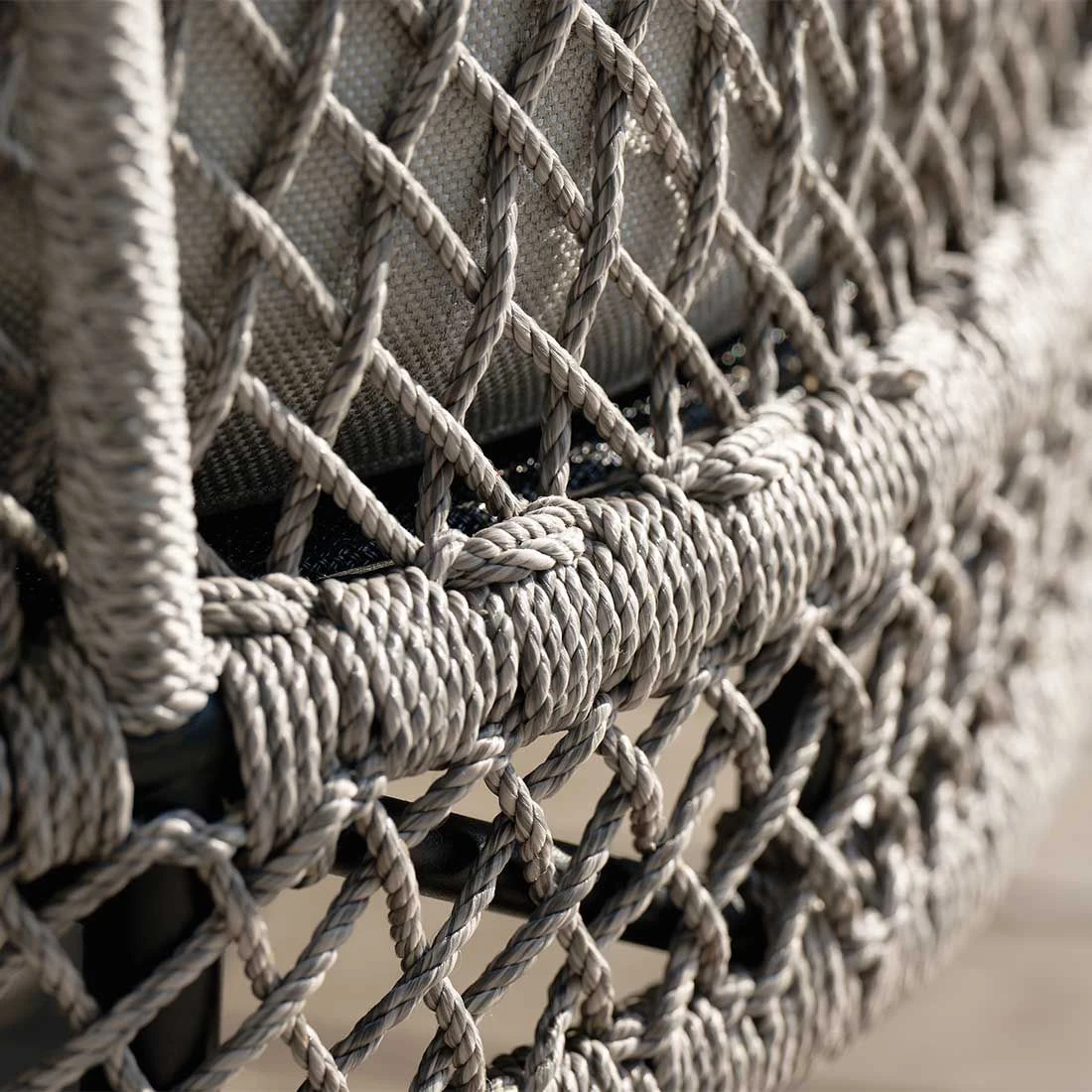Für die Herstellung des Gestells wird hochwertiges und wetterfestes Aluminium verwendet. Farblich ist es in attraktivem Schwarz Matt gehalten. Hochwertiges Rope umgibt das robuste Gestell und verleiht dem Daybed damit einen ganz besonderen Look.