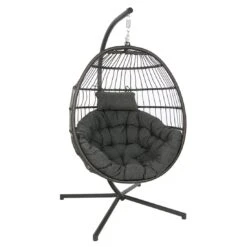 Die Klappbarkeit ermöglicht es, den Hängesessel kompakt bei Nicht-Benutzung oder im Winter einzulagern.