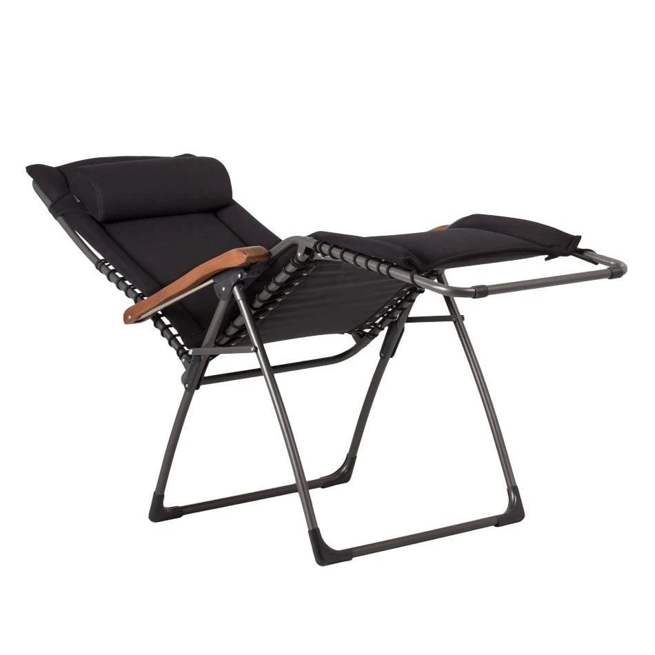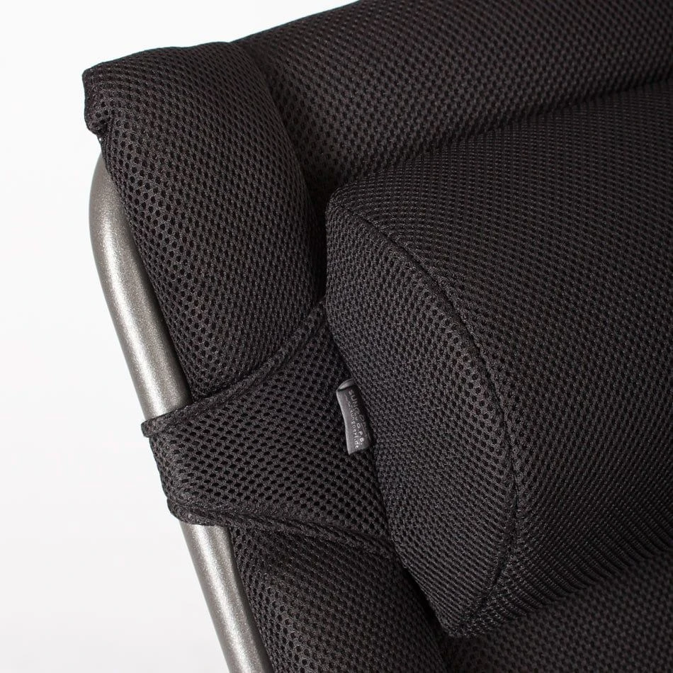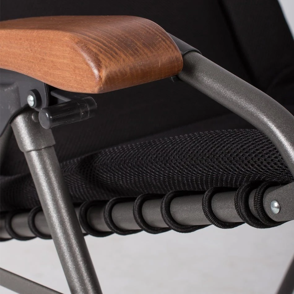 Das Gestell wird aus Stahl gefertigt und sorgt damit für stabilen Halt beim Sitzen. Farblich ist dieses in Anthrazit gehalten. Die Sitzfläche hat eine elegante Farbgebung in Schwarz. Der Korpus und die Sitzfläche sind aus Textilene gefertigt.