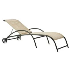 Das Gestell wird aus robustem Stahl gefertigt. Für eine attraktive Optik ist das Gestell im Farbton Anthrazit gehalten. Die Sitzfläche der Gartenliege wird mit Texplast bespannt. Die Sitzfläche hat eine schöne Farbgebung in Ecru.