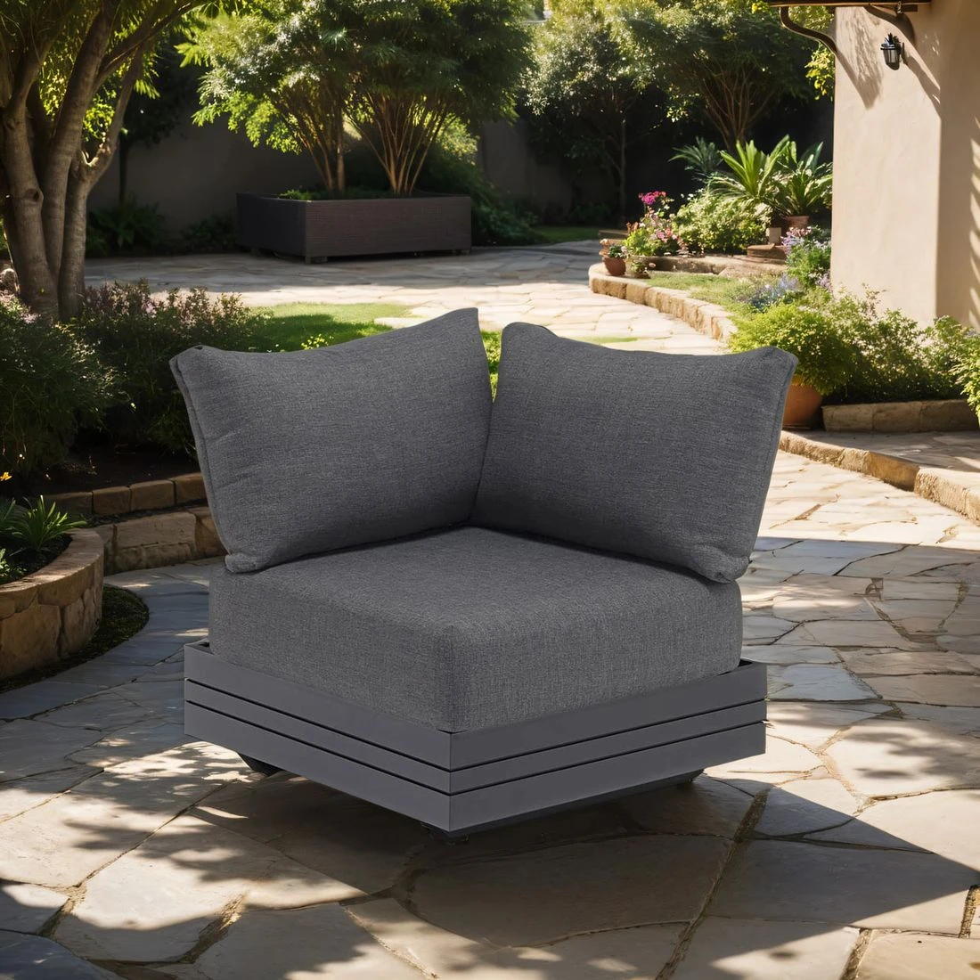 Für die Sitzfläche und den Bezug kommt Olefin zum Einsatz. Das Gestell besteht aus Aluminium. Optisch begeistert das Gestell in der Farbe Graphit. Die Farbe des Bezugs ist Dunkelgrau.