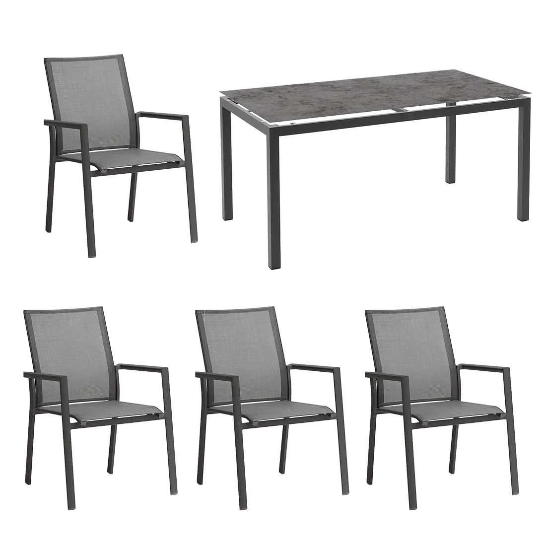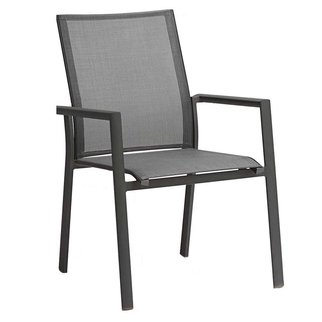 Das Gestell ist aus Aluminium gefertigt. Dadurch lassen sich die Möbel leicht von einem Standort zum nächsten transportieren und sind dennoch sehr stabil. Ein weiteres Highlight der Sitzmöbel ist die Bespannung der Sitzflächen mit Textilene in der Farbe Carbon Grey. Dieses Material zeichnet sich durch eine hohe Robustheit gegenüber Hitze und Frost aus und ist leicht zu reinigen.